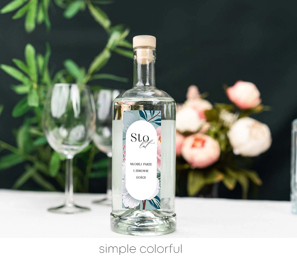 Absolutnie piękne i proste etykiety na alkohol z kolekcji Simple pięknie przyozdobią butelki na Waszym stole weselnym. Karteczki wykonano z najwyższej jakości materiałów i zaprojektowano w taki sposób by emanowały lekkością, harmonią i niezobowiązującą elegancją. Zatroszczono się o idealne proporcje, tak by ich wymiary wynosiły dokładnie (większa) 120×50 mm i (mniejsza) 105×45 mm. Różnorodność wzorów pozwoli Wam wybrać motyw, idealnie oddający charakter Waszego ślubu i wesela. Wszystkie naklejki na butelki z kolekcji Simple charakteryzują się skromnym designem i trwałością wykonania. Ich styl jest wysoce uniwersalny i świetnie sprawdzi się na weselu organizowanym w stylu klasycznym, minimalistycznym oraz glamour. Proste etykiety na alkohol weselny z kolekcji Simple to znakomity wybór, którego z pewnością nie będziecie żałować.