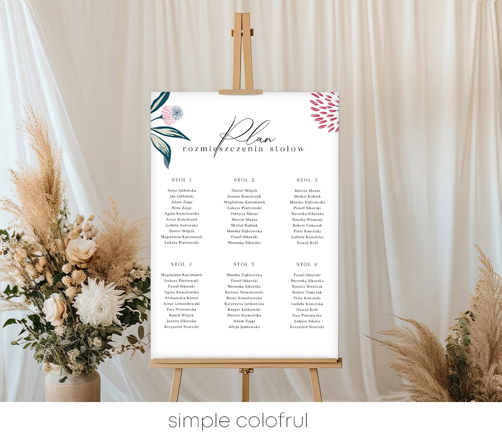 Tablice z rozmieszczeniem stołów z kolekcji Simple