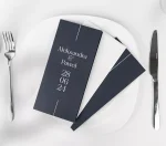 Zaproszenia ślubne z kolekcji Elegant Silver wykonano z granatowego, gładkiego papieru o gramaturze 350g. Wymiary produktu wynoszą 99×210 mm, a wymiary koperty 220x110mm. Wszystkie elementy zaproszenia mogą zostać poddane personalizacji.
